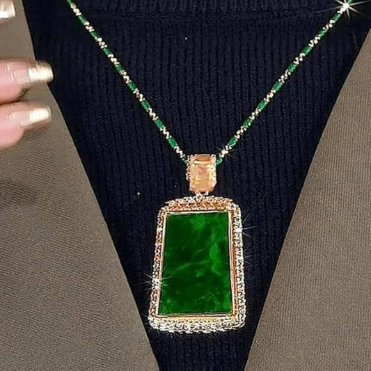 Collar Elegante con Dije de Esmeralda Zirconio Cuadrado
