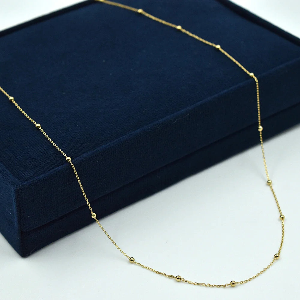 Descubre la Cadena Bilbao, un símbolo de delicadeza y fortaleza. Con su tejido militar tipo eslabón, esta cadena no solo destaca por su diseño refinado, sino también por su durabilidad excepcional. Su fino grosor de 0,6 mm y el material de oro laminado de alta calidad, ofrecen un balance perfecto entre ligereza y sofisticación.