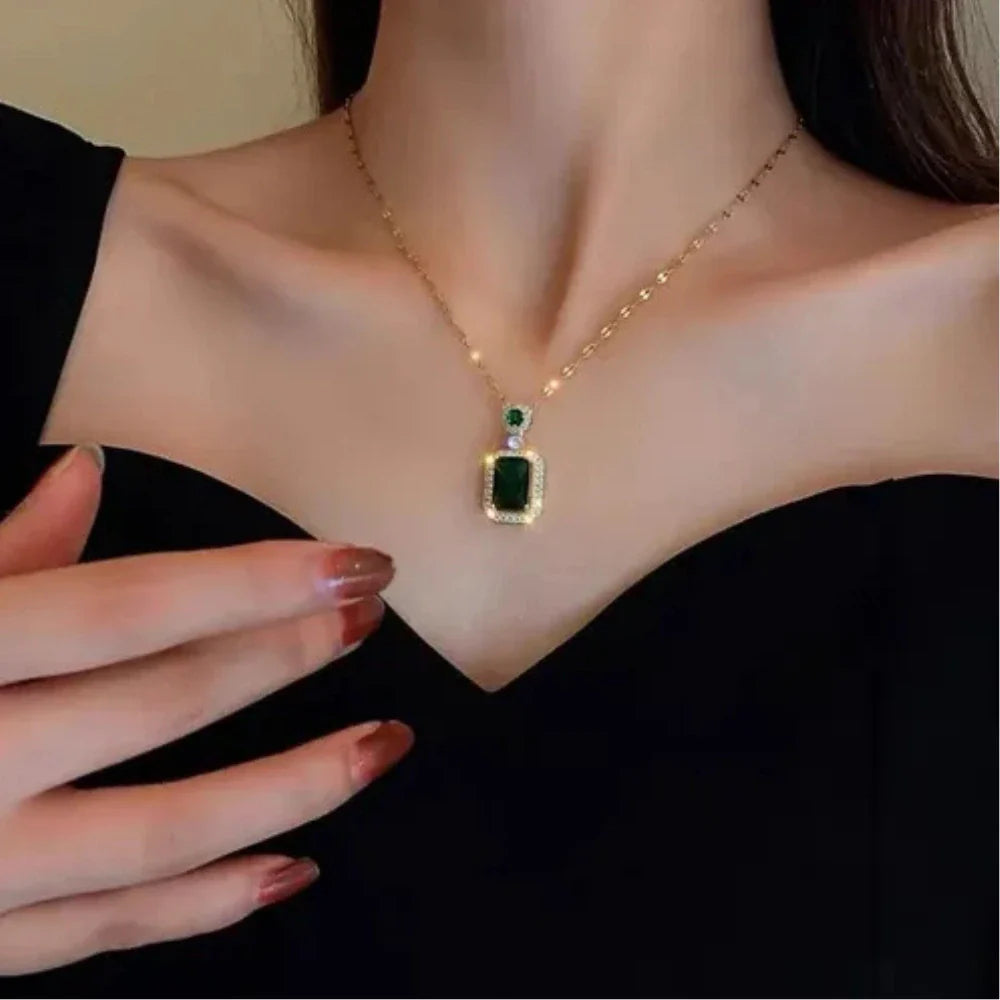 - 1 Collar Elegante con Dije de Esmeralda Zirconio Cuadrado
